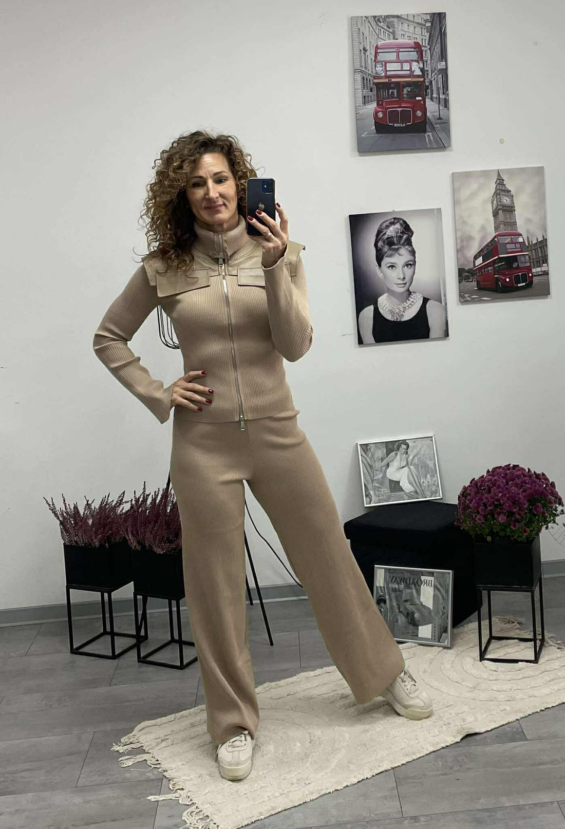 Divatos és kényelmes kötött kétrészes szett, amely tökéletes választás a hűvösebb napokra. A cipzáros felső...