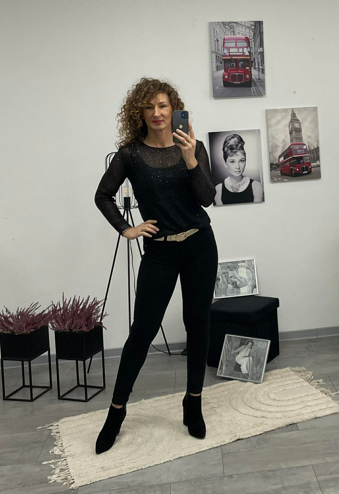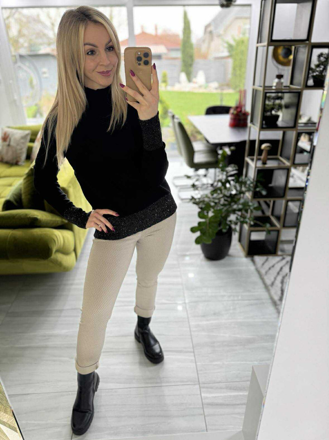 LIGHT - Csillogó szálas kötött felső.Fekete
