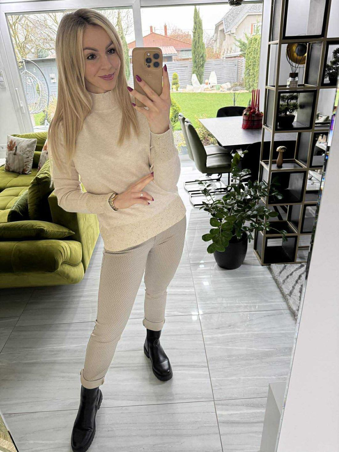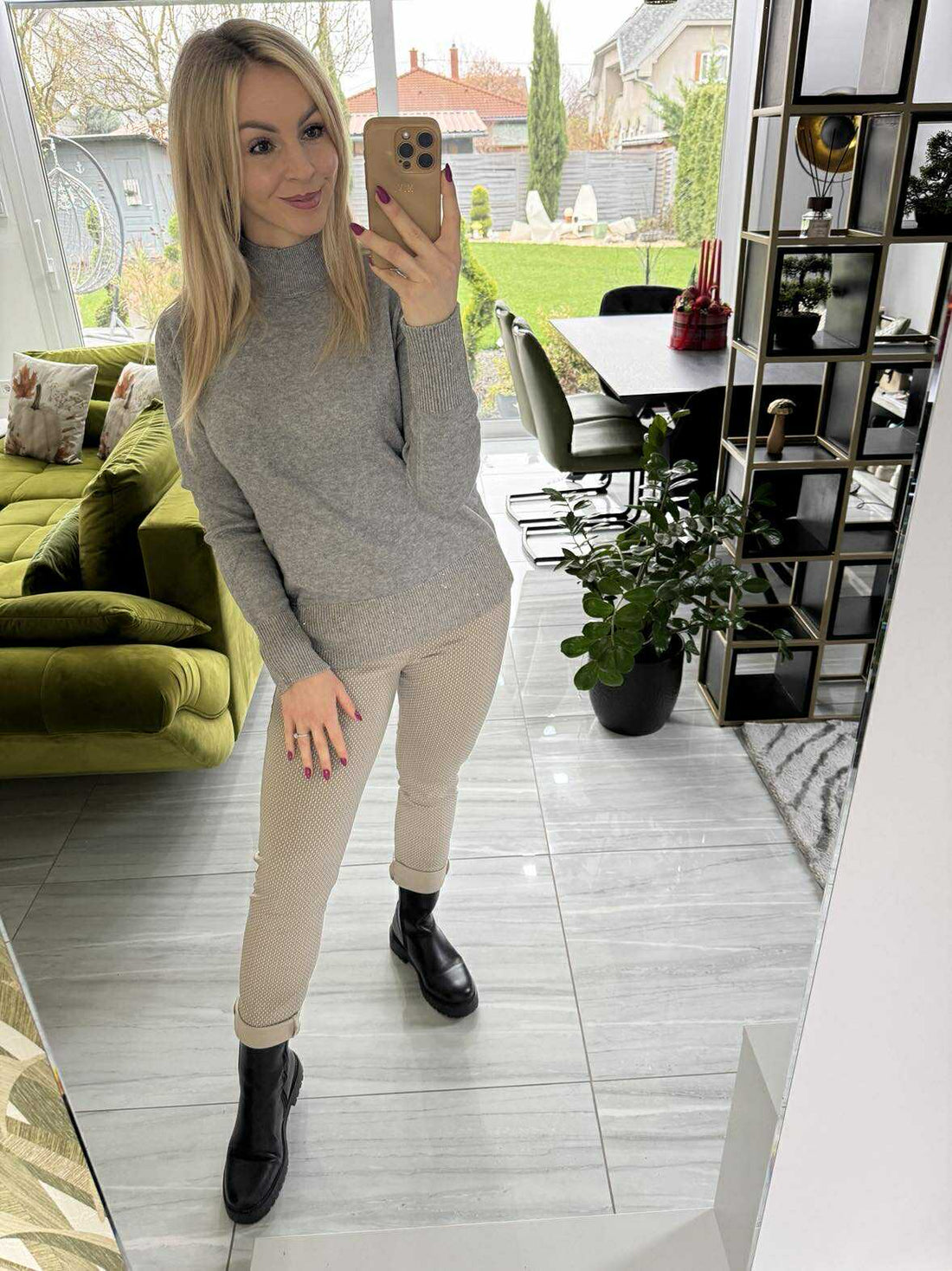 KHAKI sztreccs nadrág – kényelmes és nőies Ez a nadrág rugalmas sztreccs anyagból készült, amely...