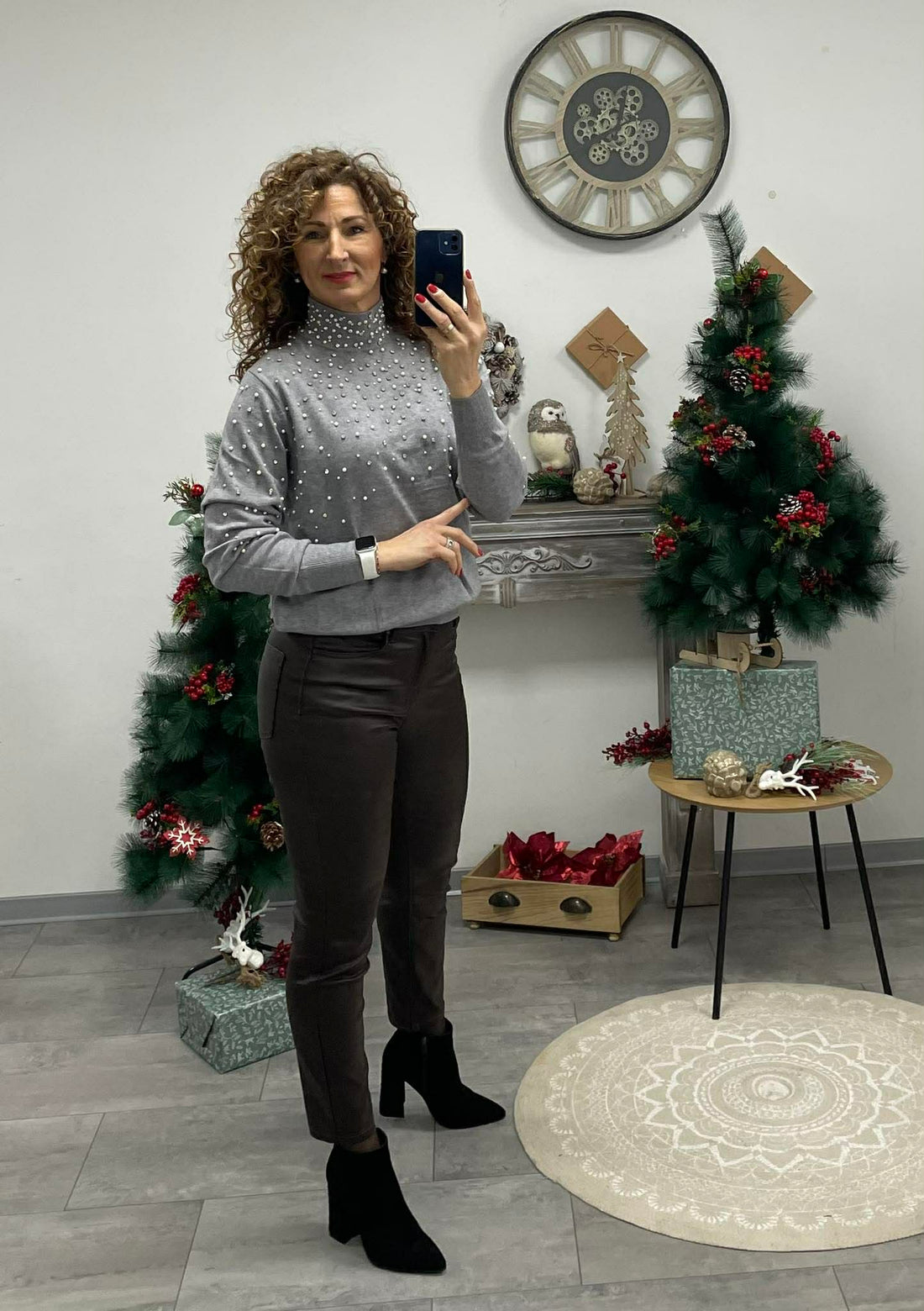 Elegáns, ünnepi hangulatú kötött pulóver, amelyet apró gyöngyök díszítenek elöl és az ujjakon — igazán...