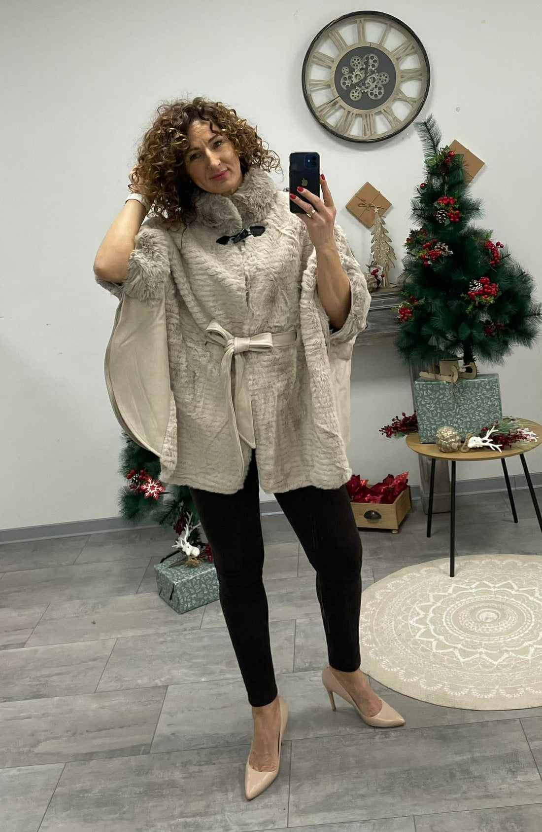 PILLE - Szőrrmés ponchó kabát. Világos bézs