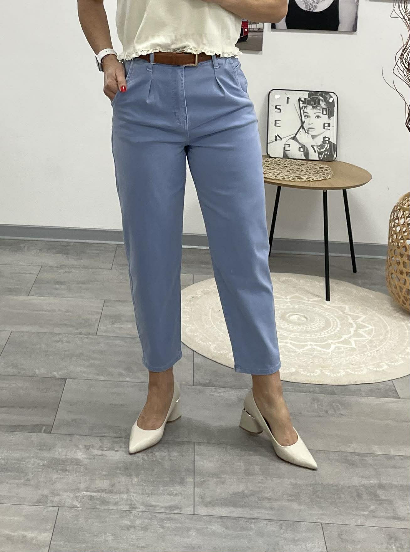 GRÉTI - Bő laza fazonú farmer nadrág. Közép kék