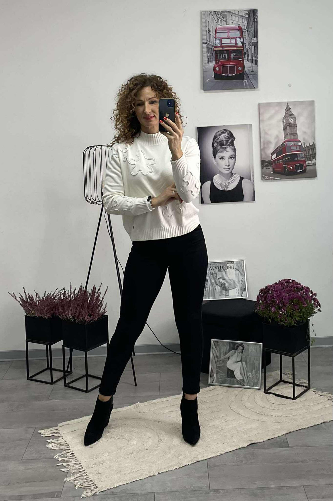 WHITE - Kötött zsinór díszes pulóver. Fehér