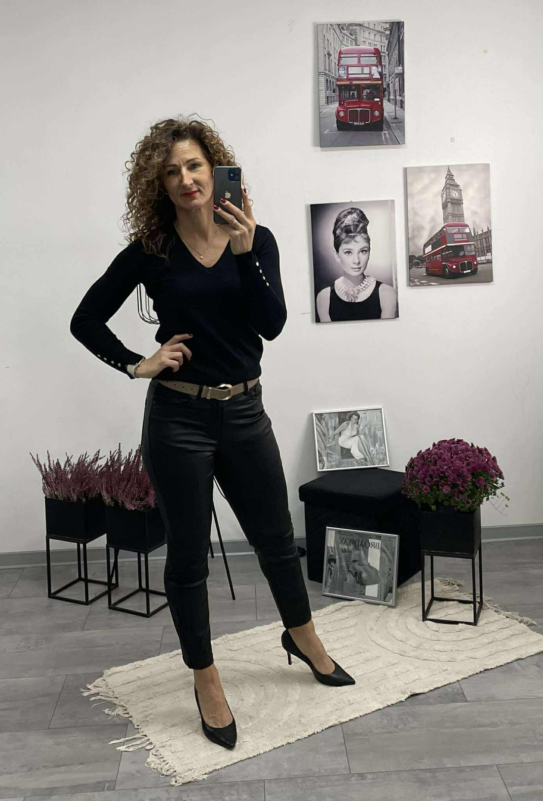 Paula - Bőrhatású MOM fitt nadrág. Fekete