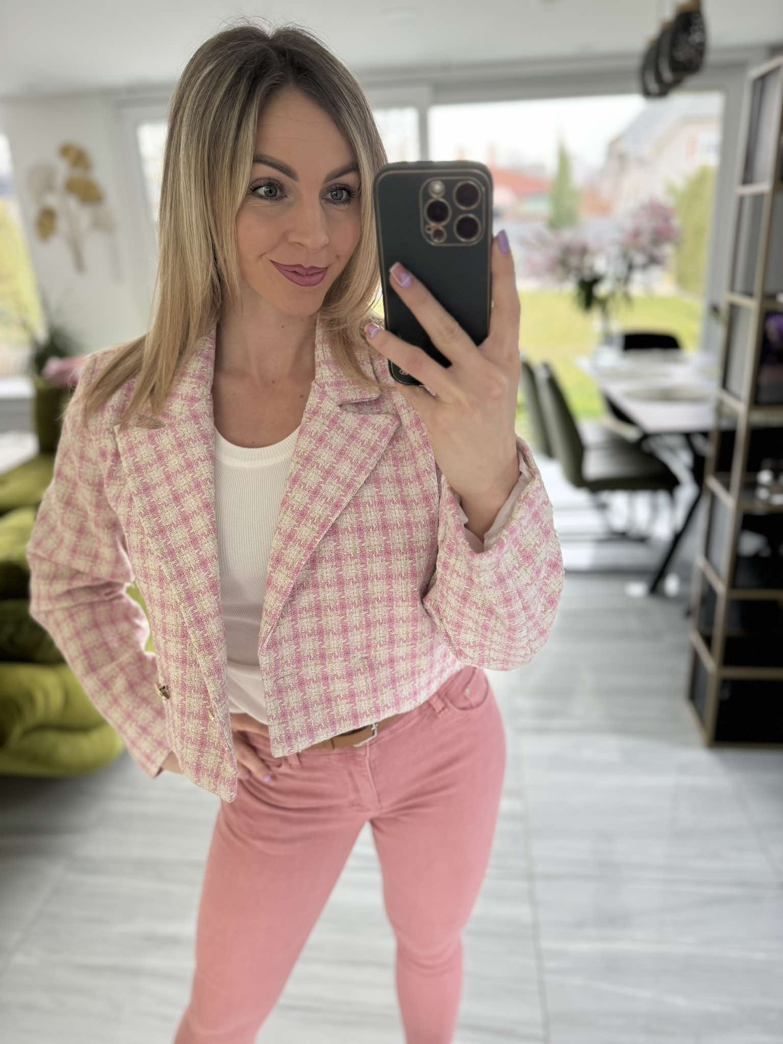 ZÁLI - Buklé boleró arany csillogó szállal. Rózsaszín