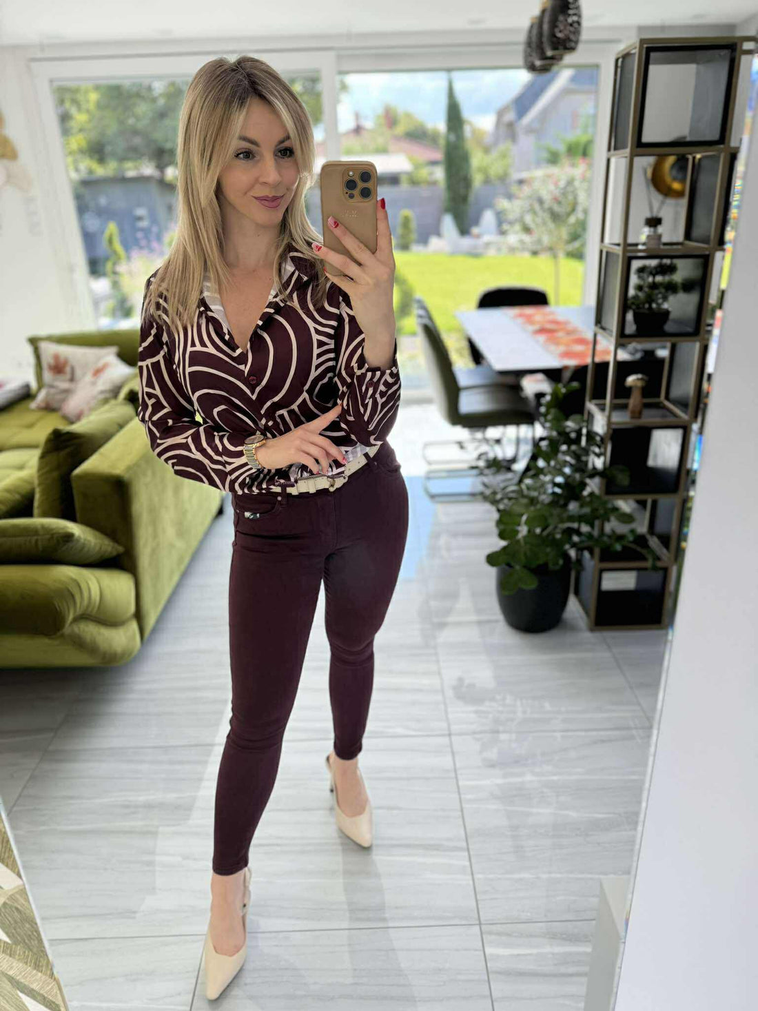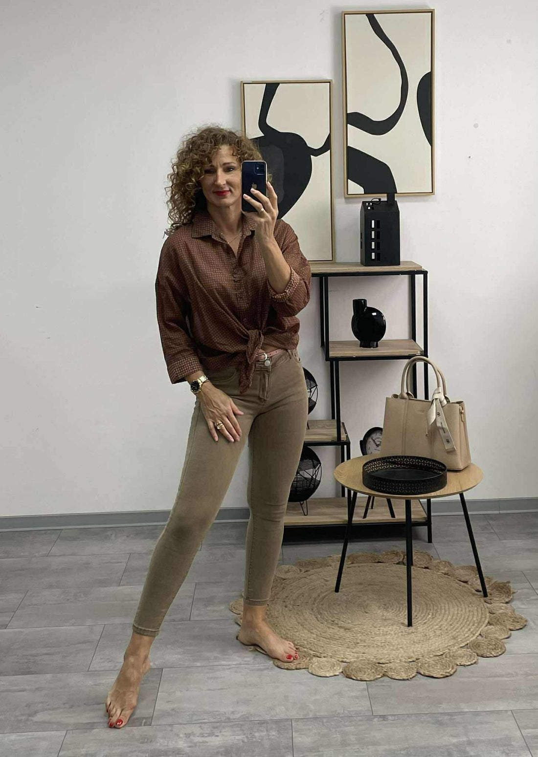 RÓZSI - Hálós mintás felső, Világos drapp