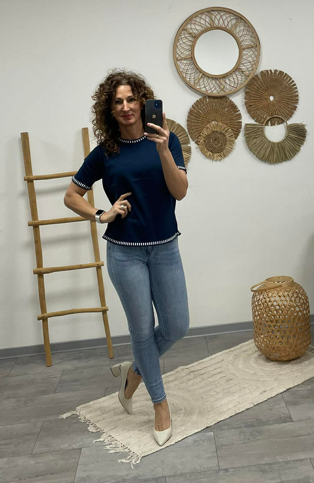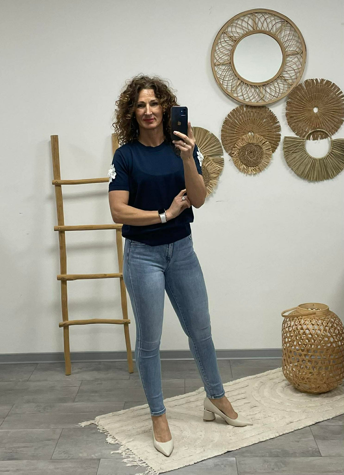 VIOLA - Virágos ujjú felső. Sötétkék