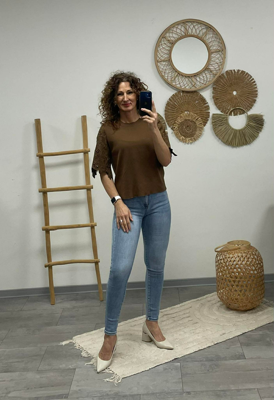VIRÁG - Csipke ujjú feslő. Sötétbarna