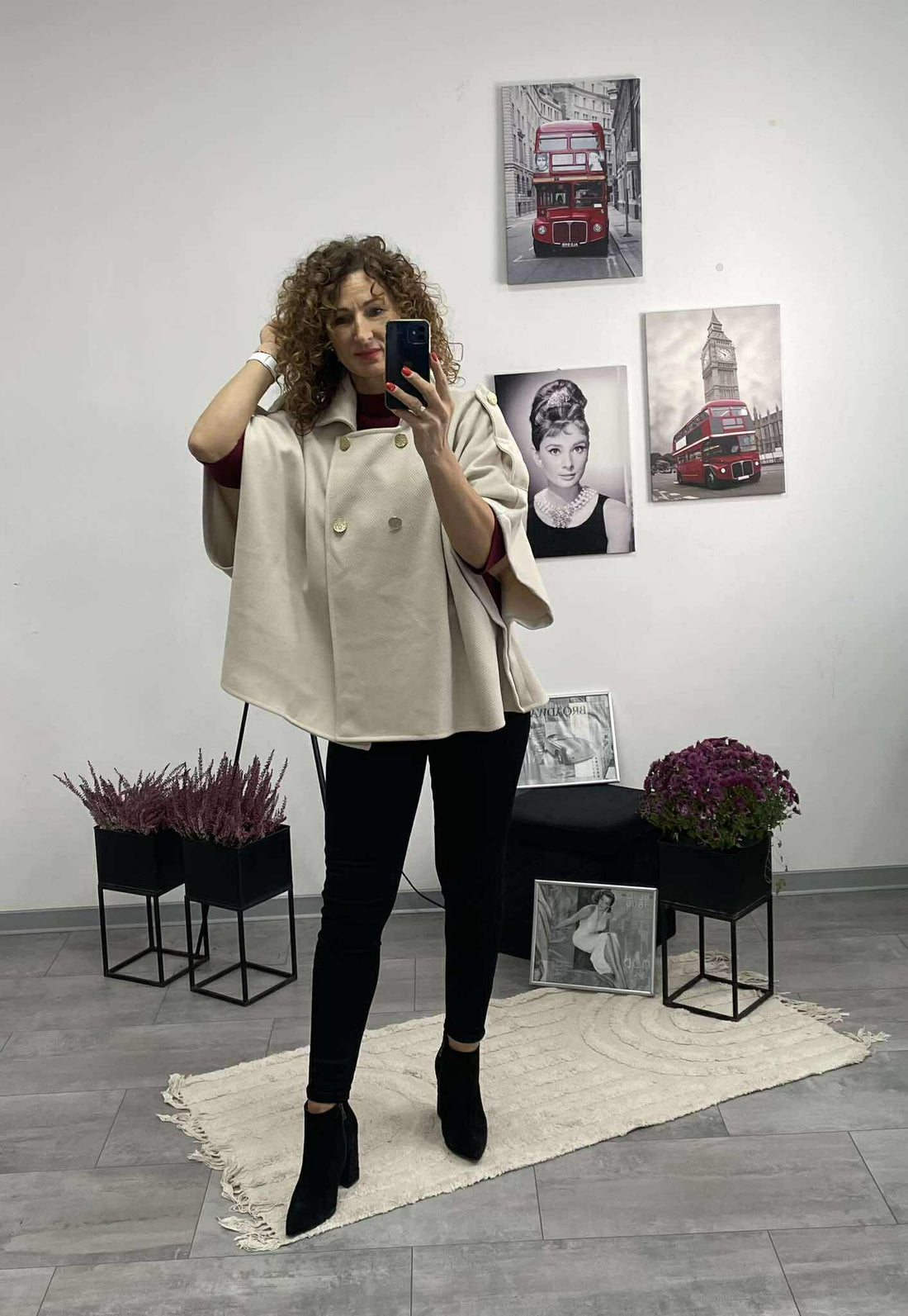 PILLE - Szőrrmés ponchó kabát. Világos bézs