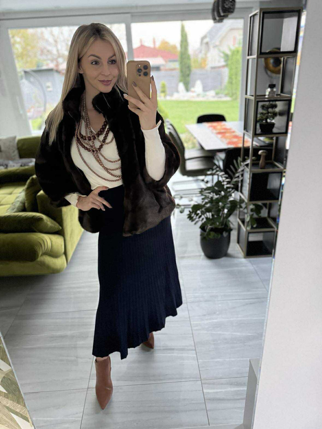 Pille - Szőrmés pocsó kabát. Csau barna
