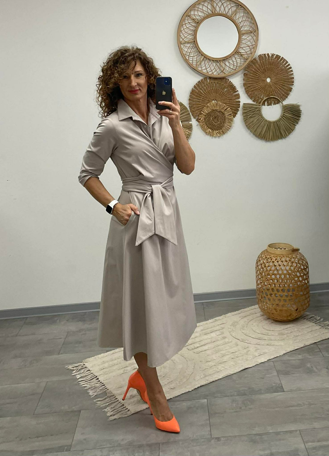 ERÁS - Kötött magában mintás ruha. Tört fehér