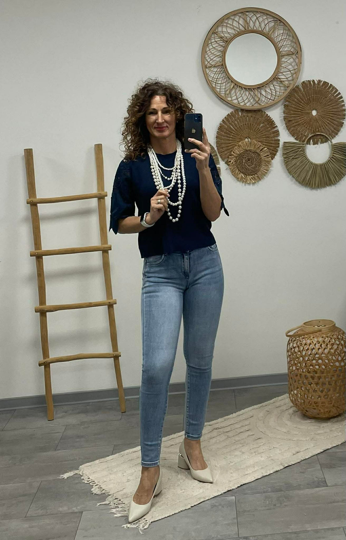 VIRÁG - Csipke ujjú felső. Sötétkék