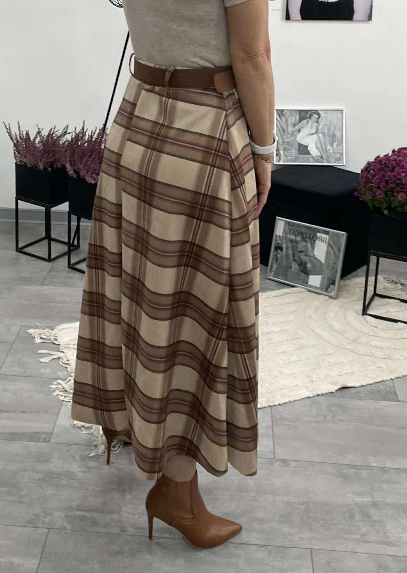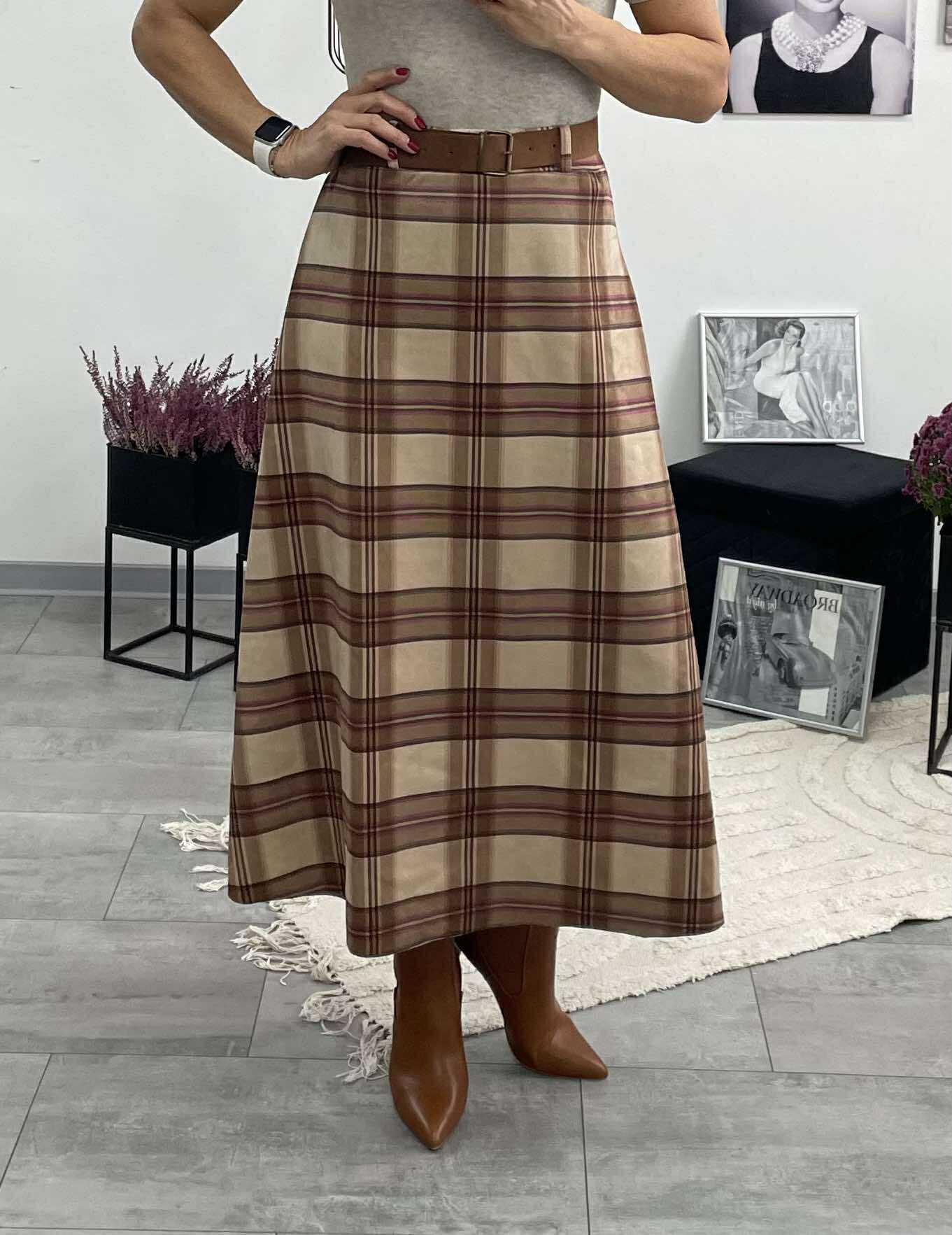 Stílusos, karcsúsító szabású kockás szoknya, amelynek gumis dereka kényelmes illeszkedést biztosít. Tökéletes választás a mindennapokra vagy elegáns őszi összeállításokhoz.
