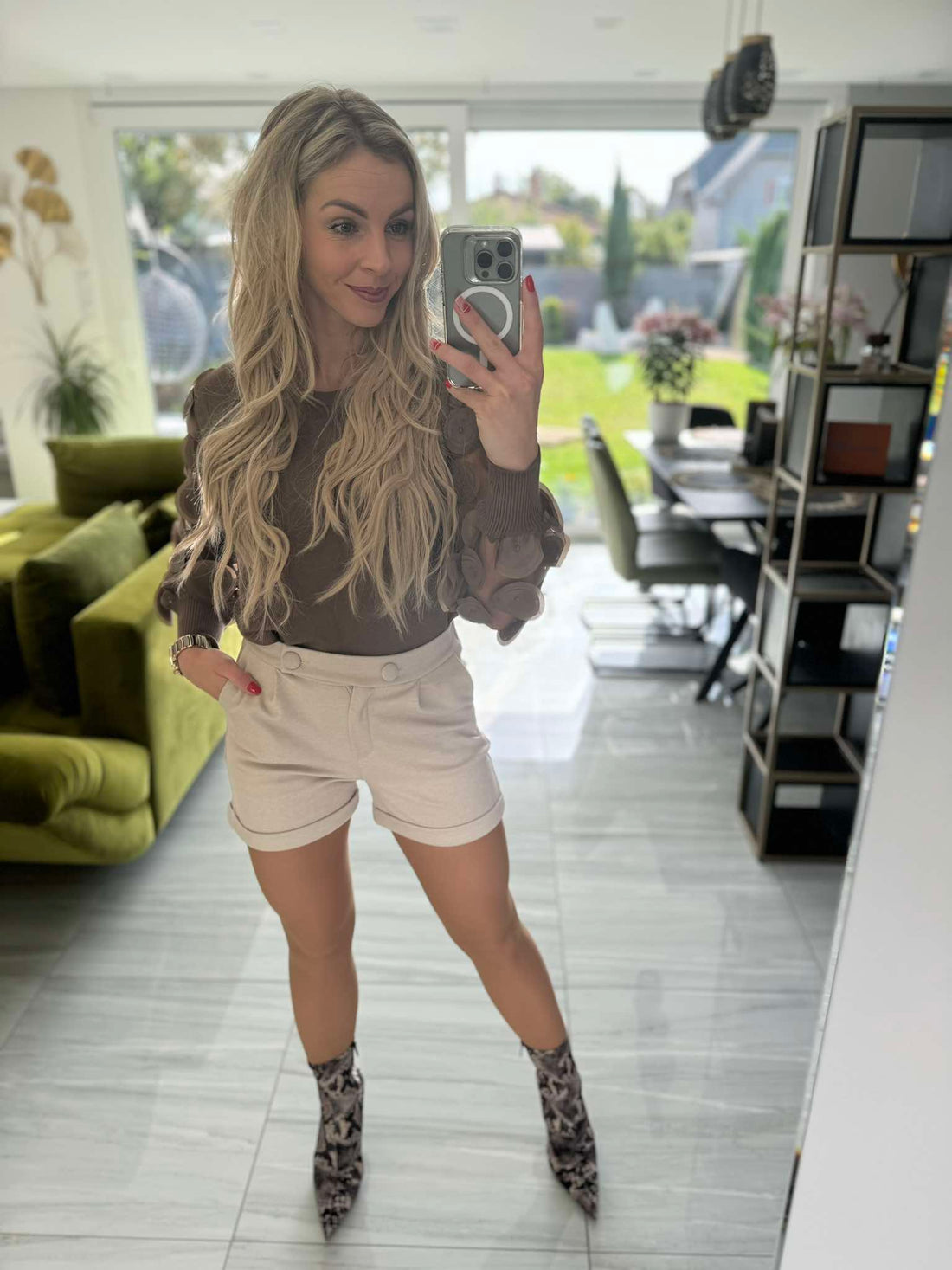 VALENTINA - Szövet rövid nadrág. Világos bézs