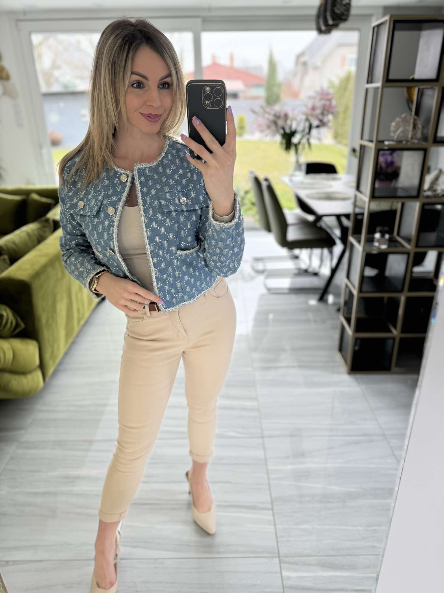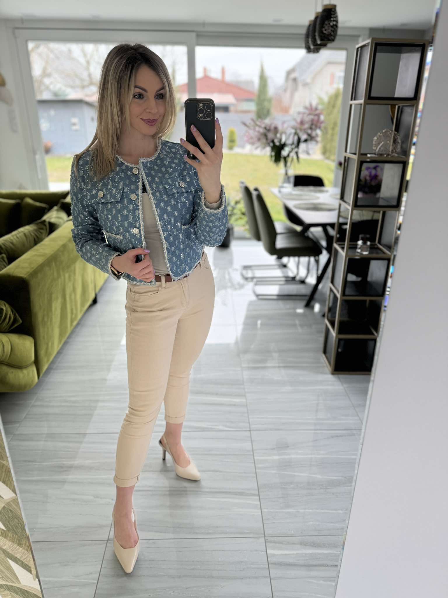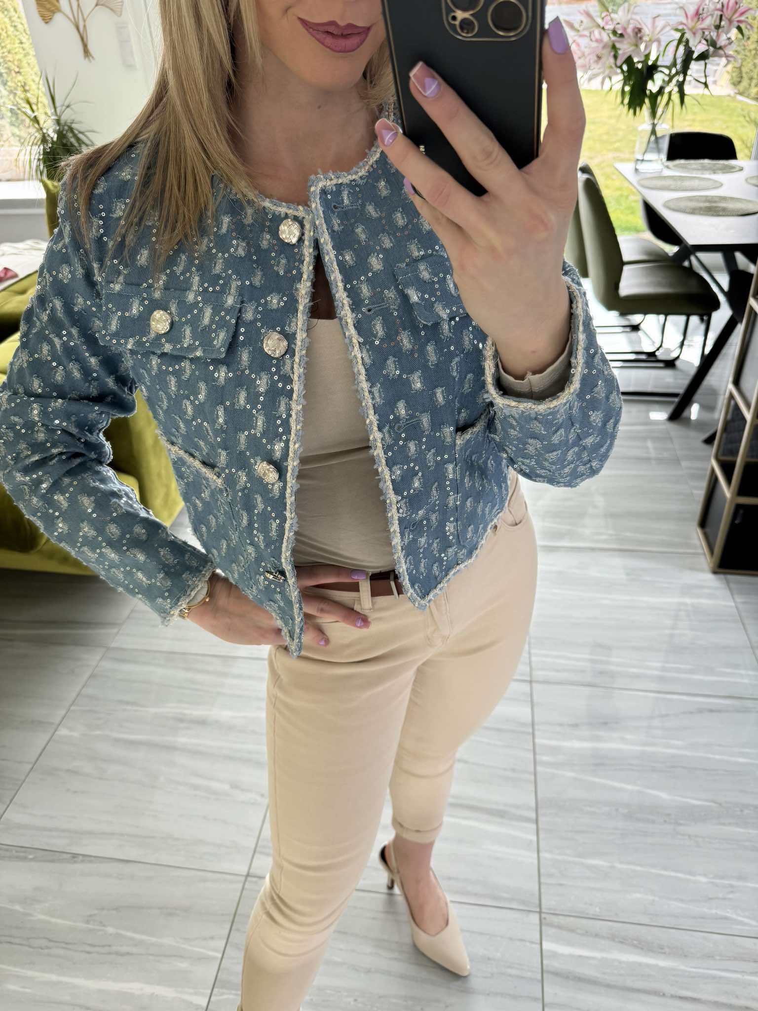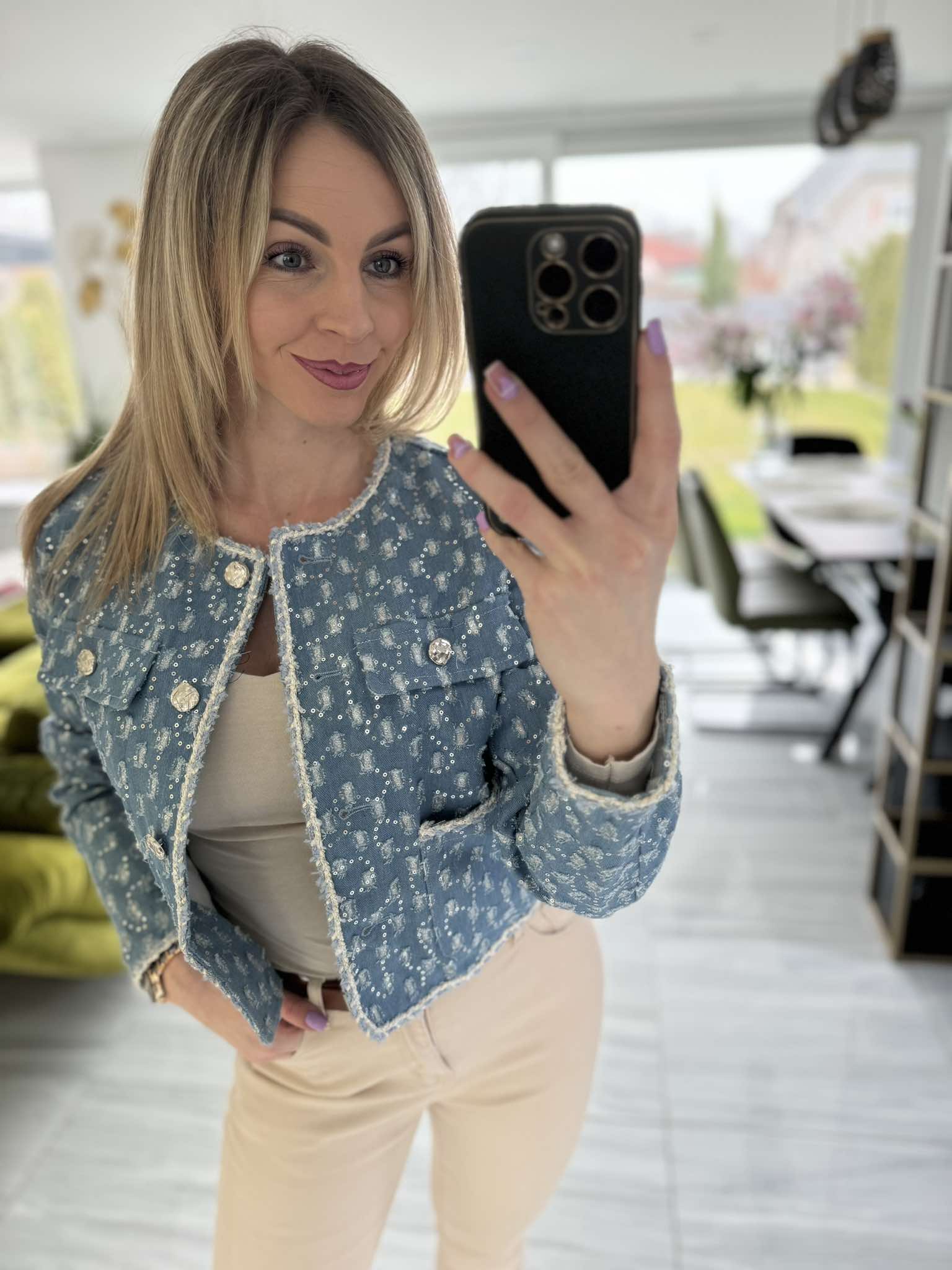 EVI - Különleges ezüst csillogós farmer kabát