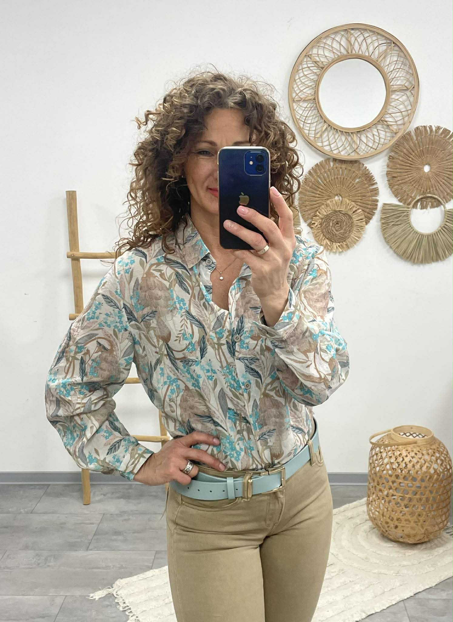 Könnyed, nőies virágmintás ing áttetsző anyagból, ami finoman kiemeli a megjelenésed.