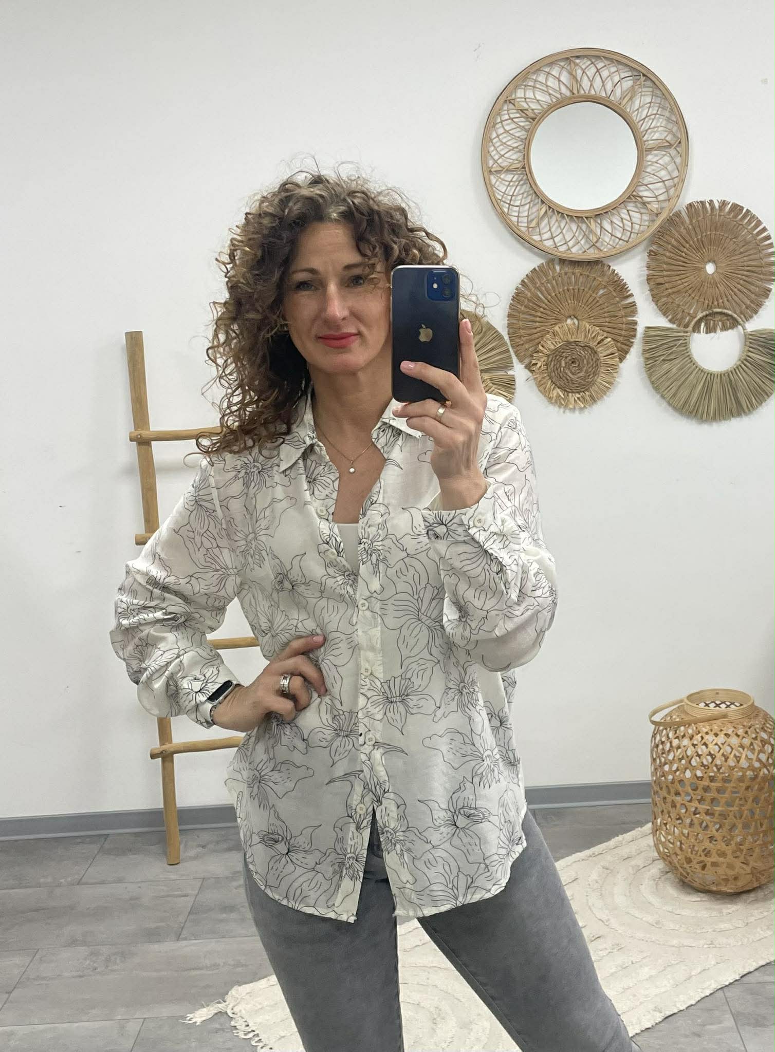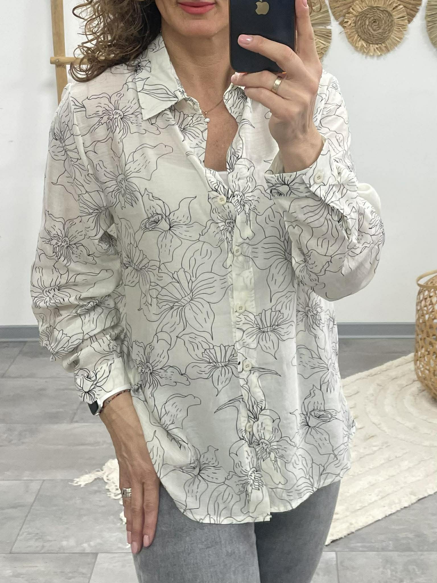Könnyed, nőies virágmintás ing áttetsző anyagból, ami finoman kiemeli a megjelenésed.