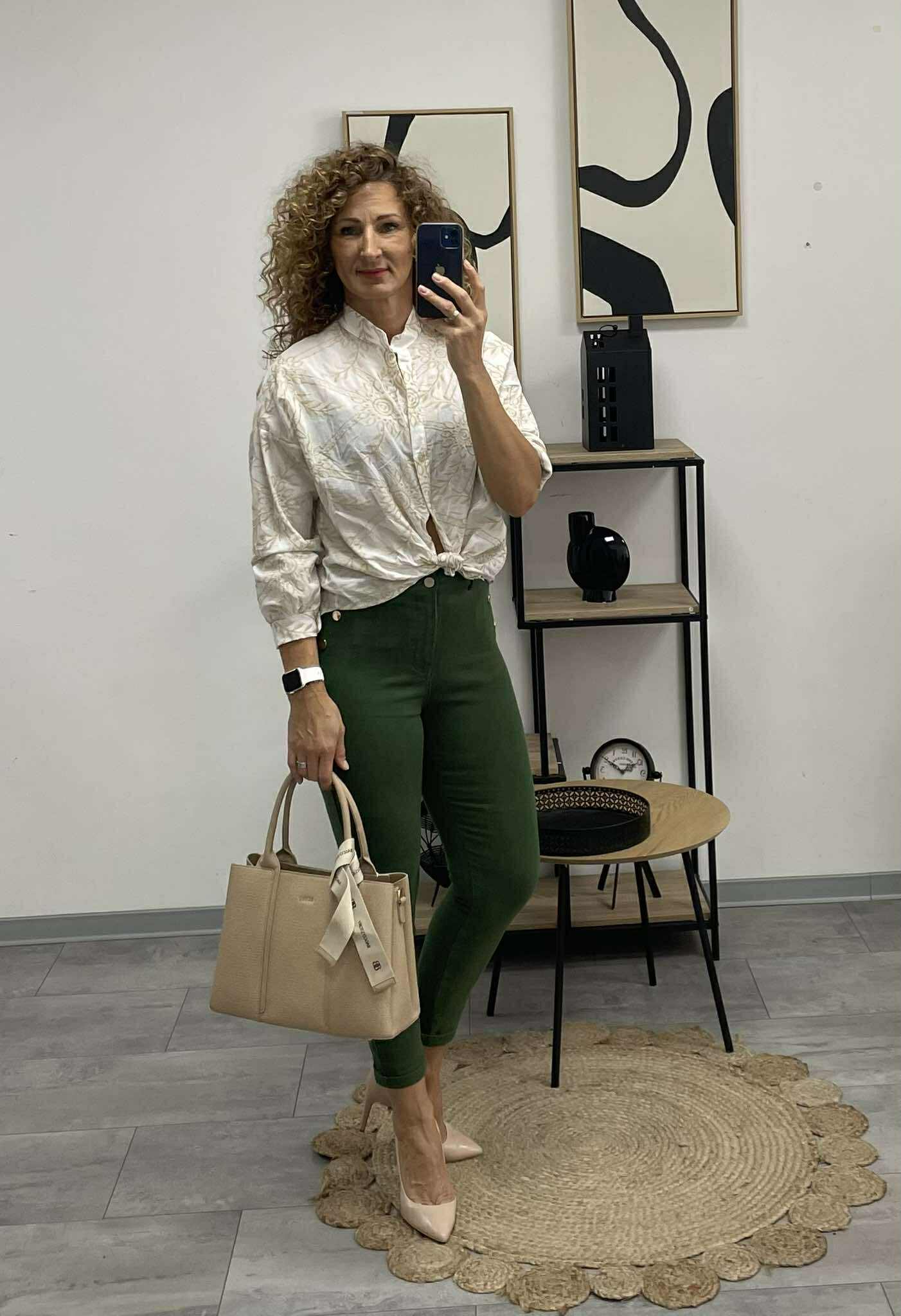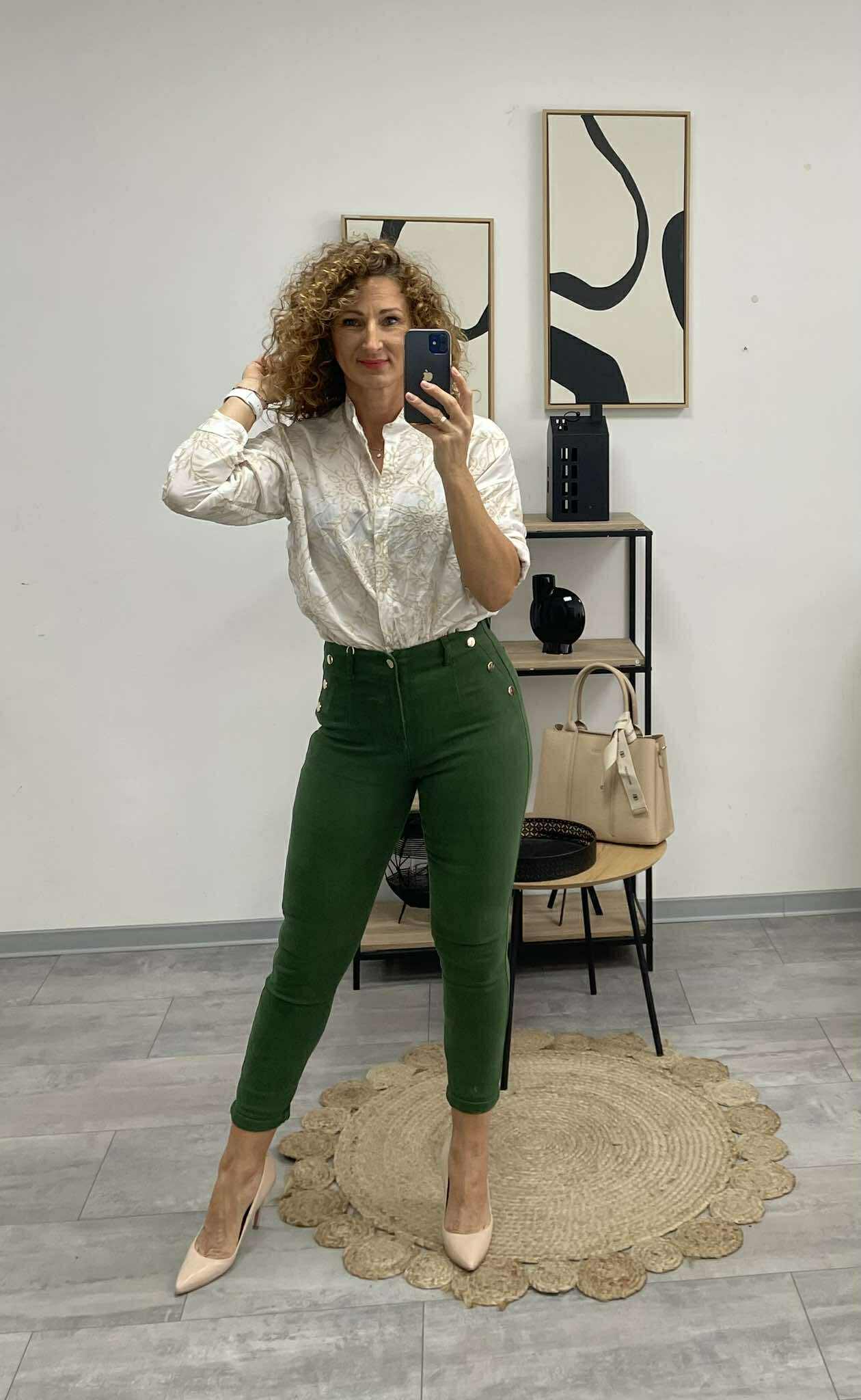 KATA - Aranygombos nadrág. Méregzöld