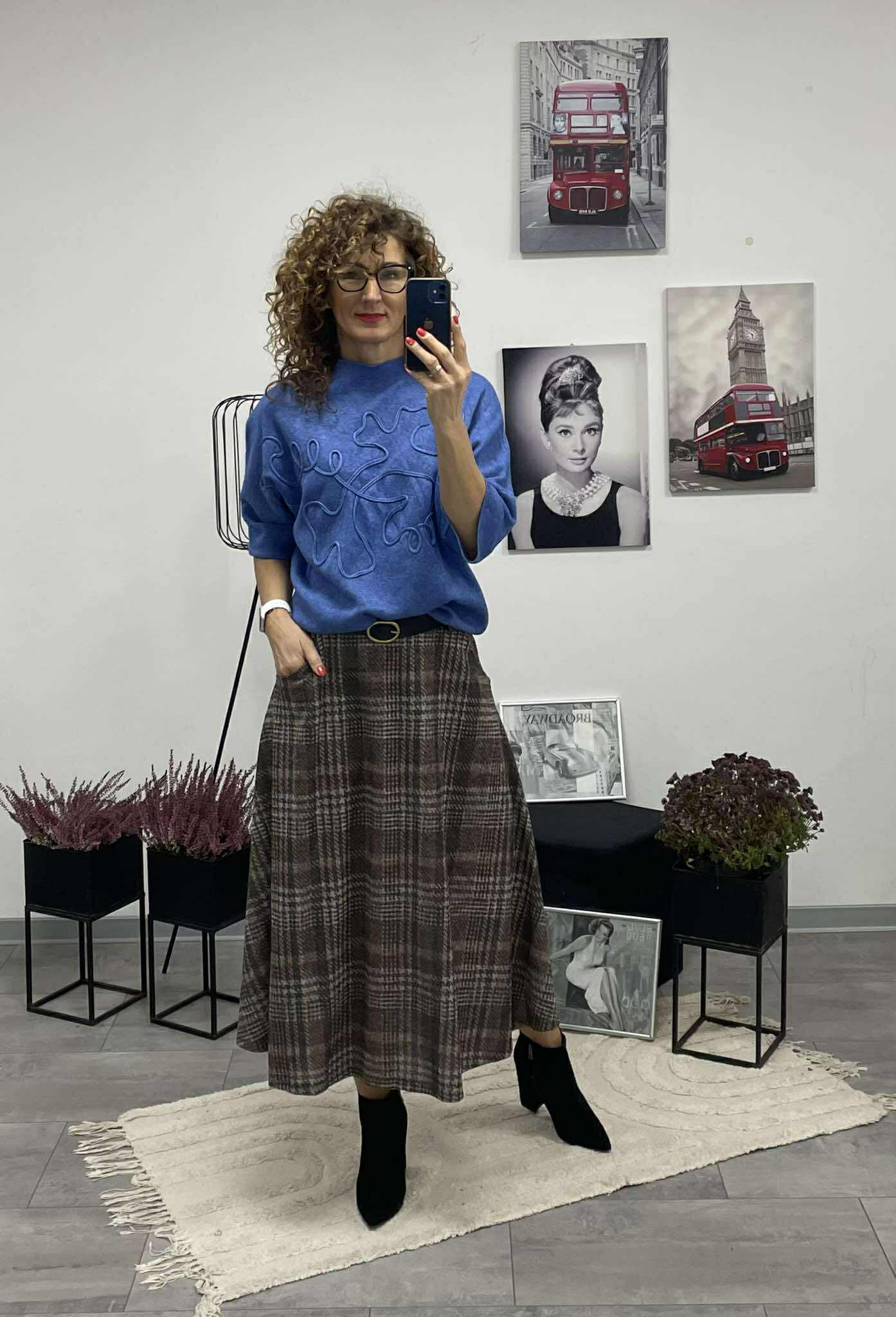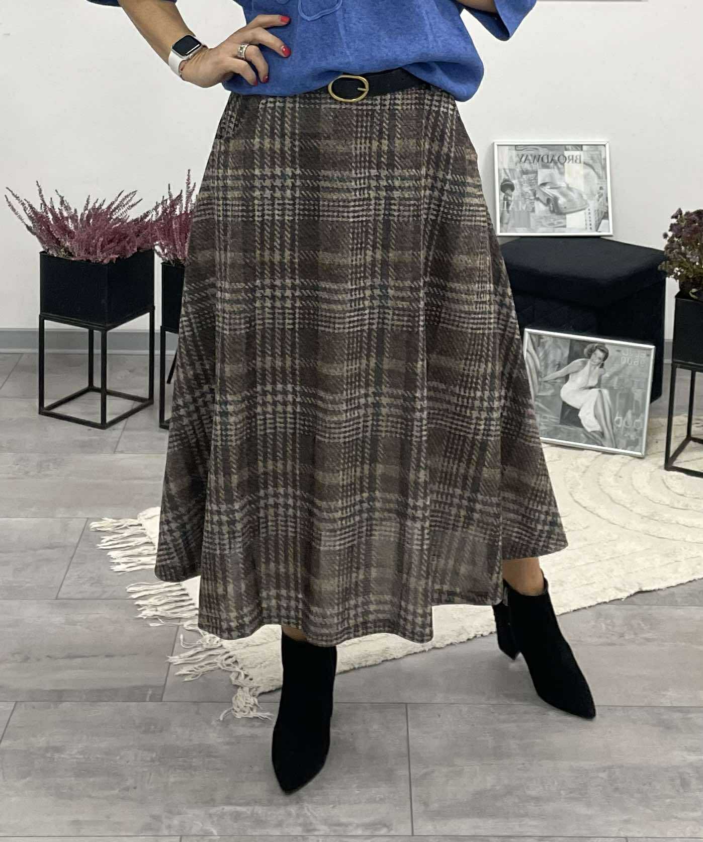 Ez a kockás mintájú szoknya a hidegebb évszakok tökéletes darabja, amely egyszerre kényelmes és nőies.