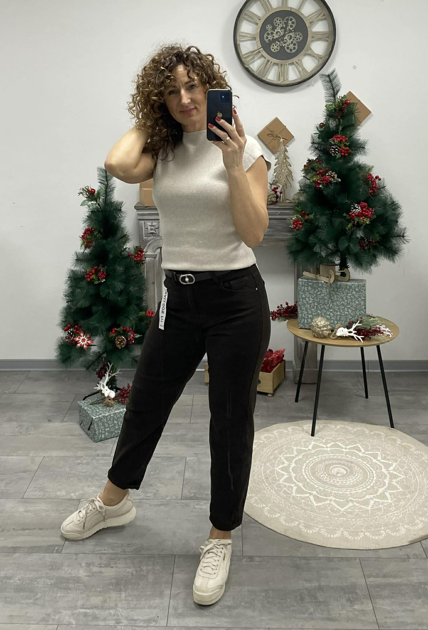 Stílusos, magas derekú farmernadrág modern mom fit fazonnal.