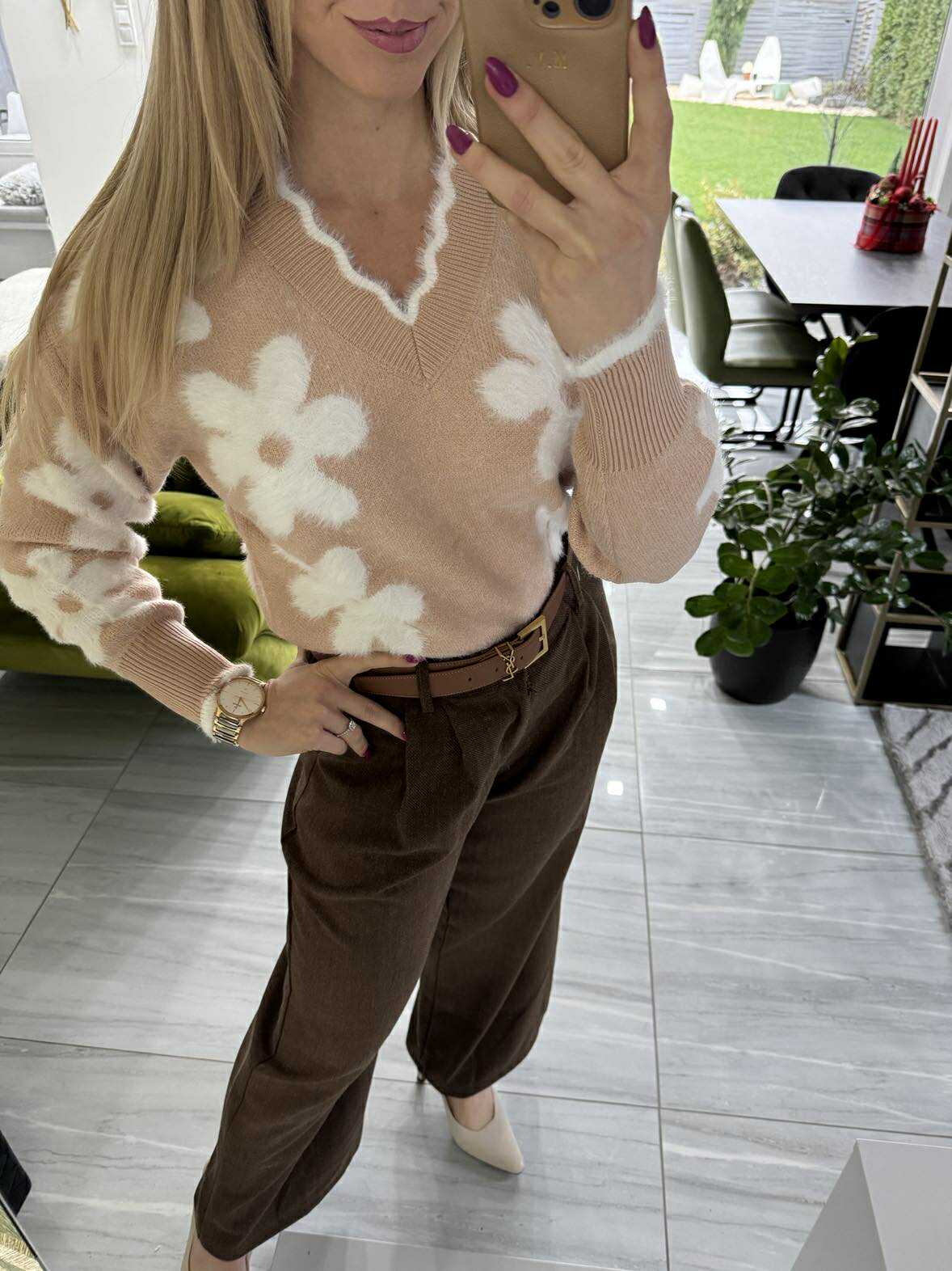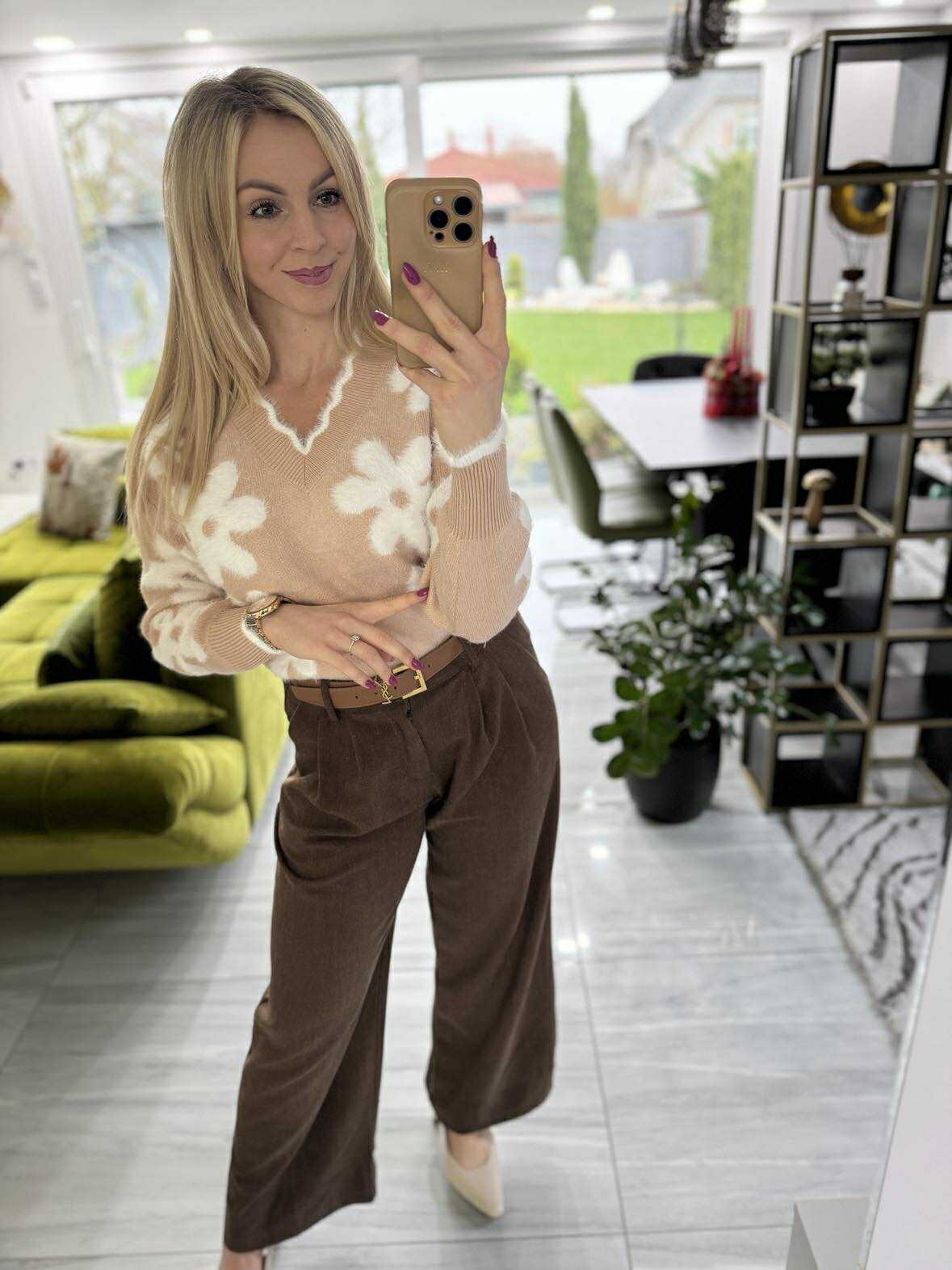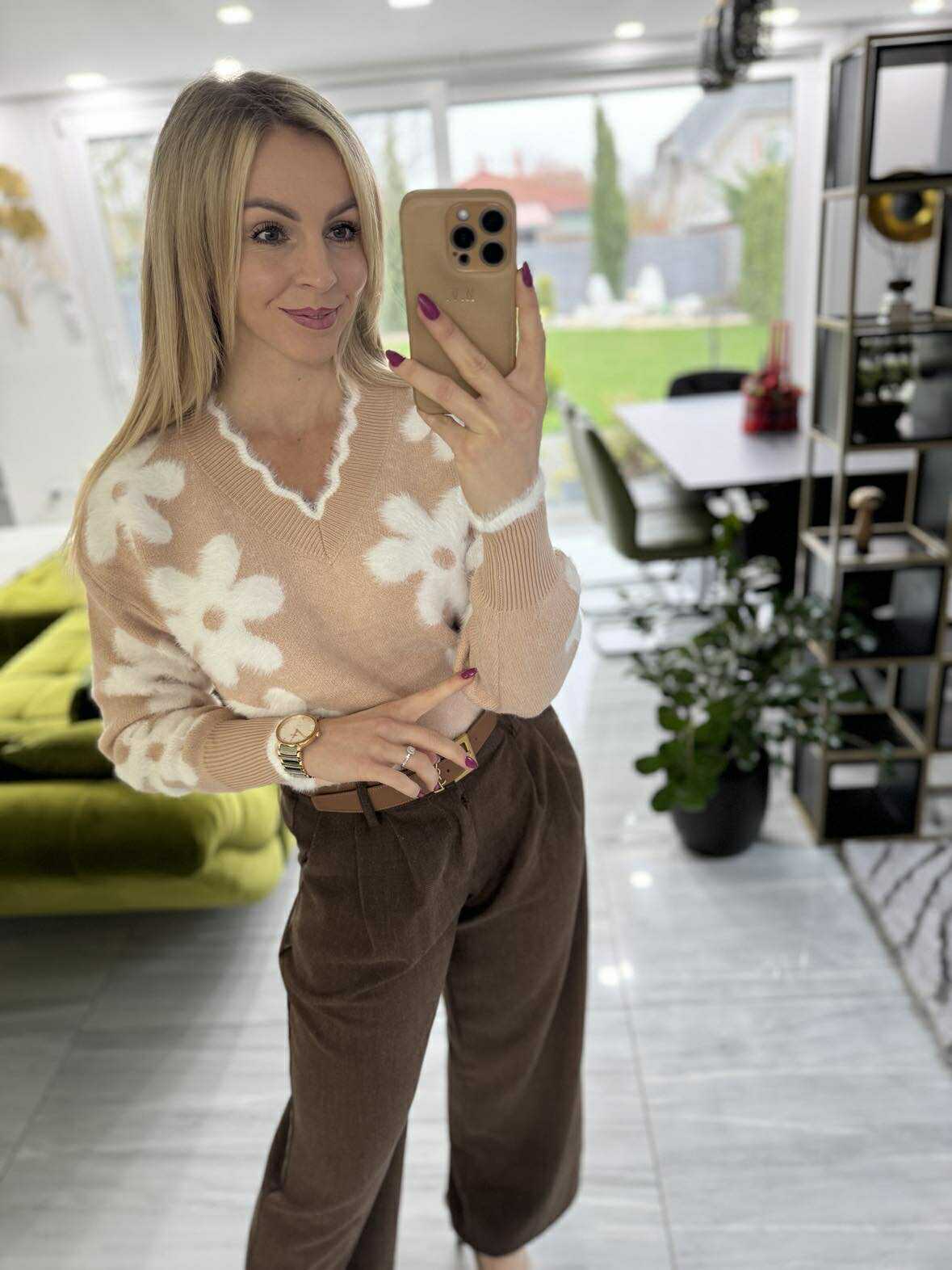 PIHE - Virág mintás pulóver. Világos bézs, mogyoró