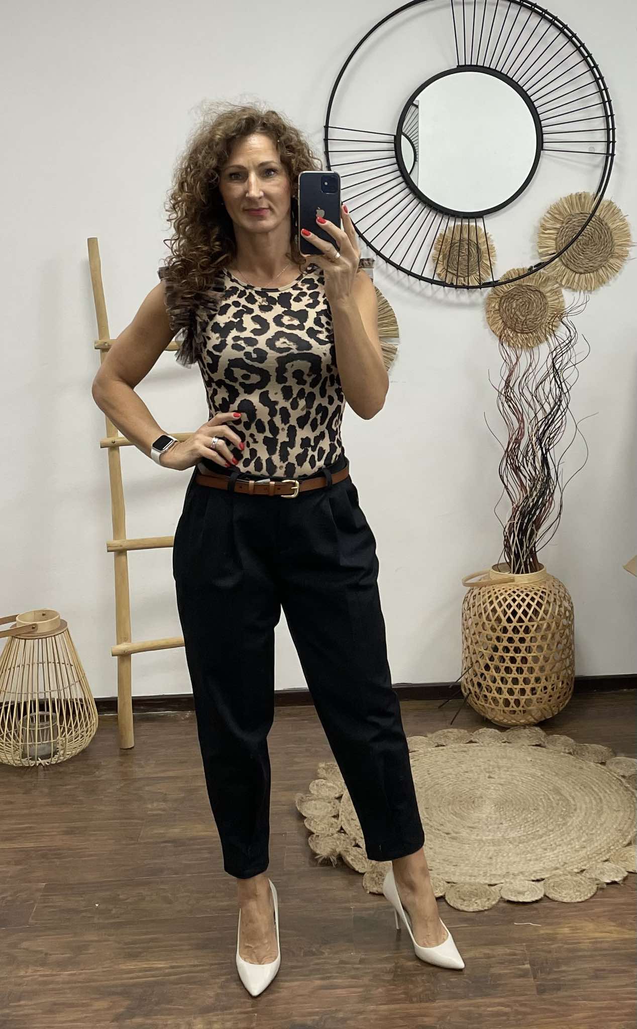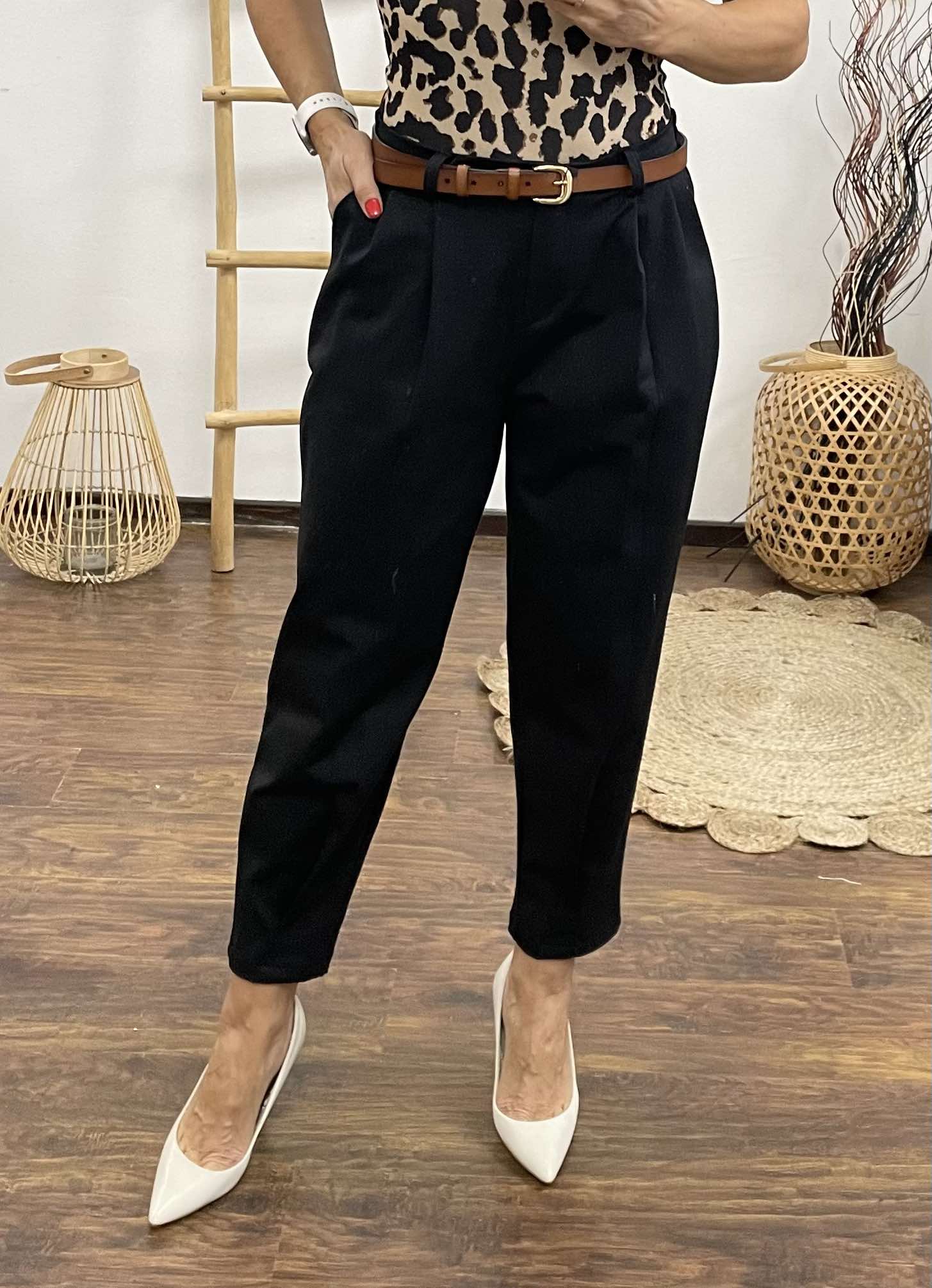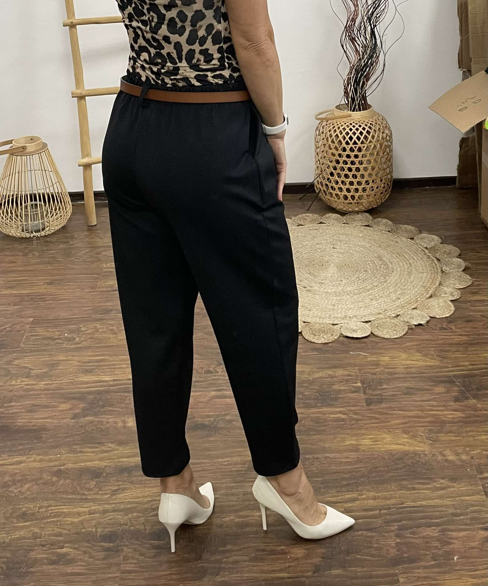 Kényelmes gumis derekú szövet nadrág. Övbújtatóval derekán hajtásokkal, Alól a szárán szintén hajtás teszi egyedivé