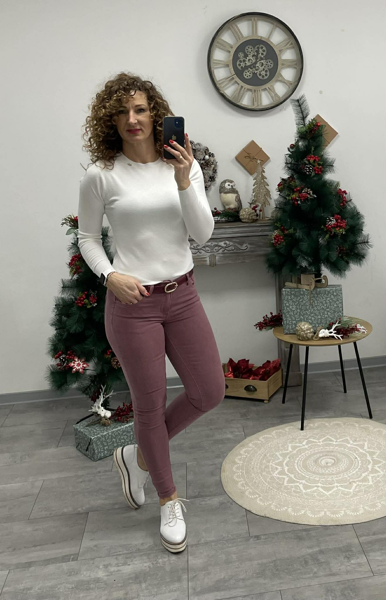 Ez a modern szabású nadrág tökéletes választás mindennapi viseletre és csinosabb szettekhez is. A slim fit, testkövető fazon szépen kiemeli az alakot, míg a push up kialakítás formálja és emeli a vonalakat.