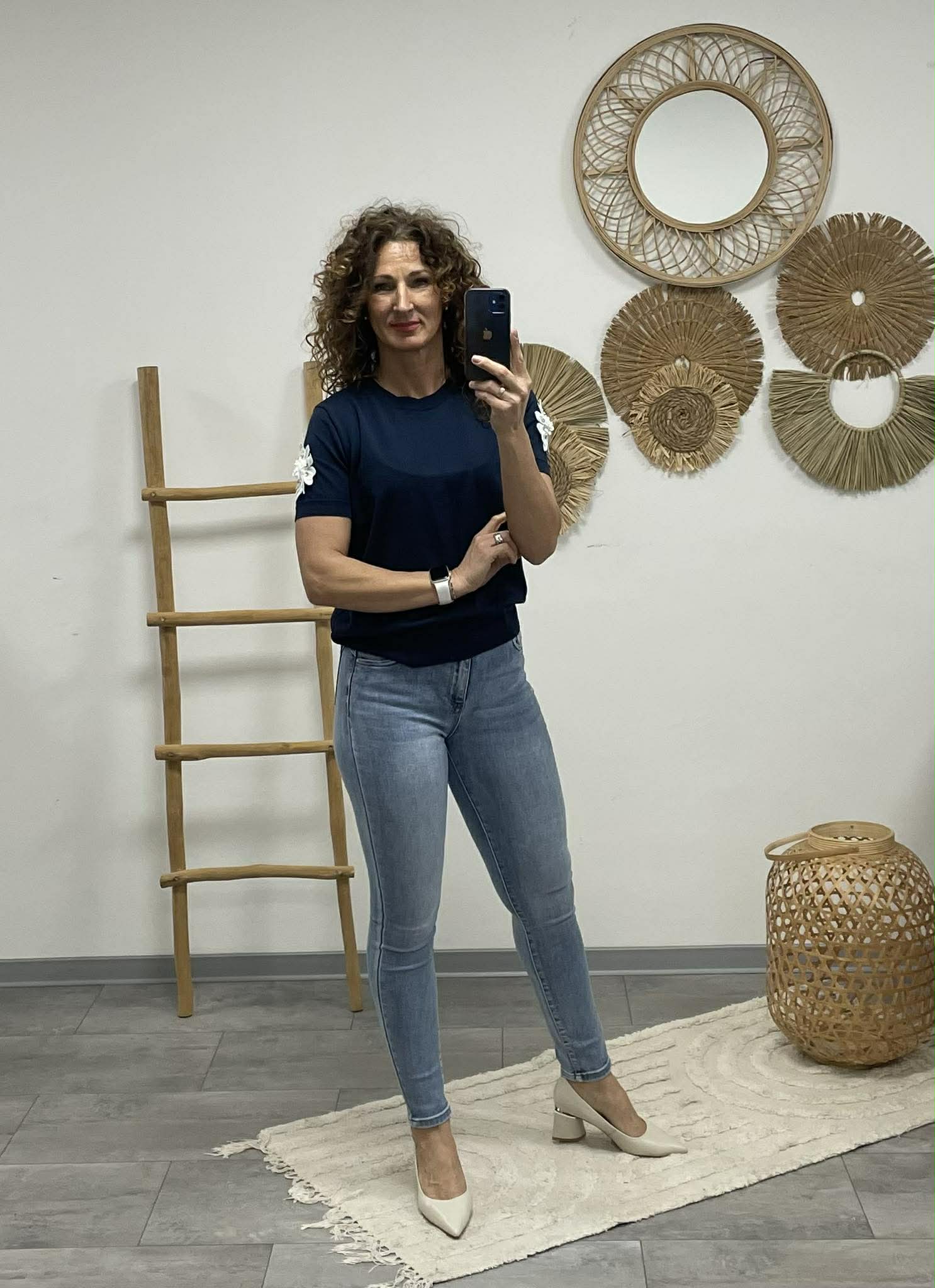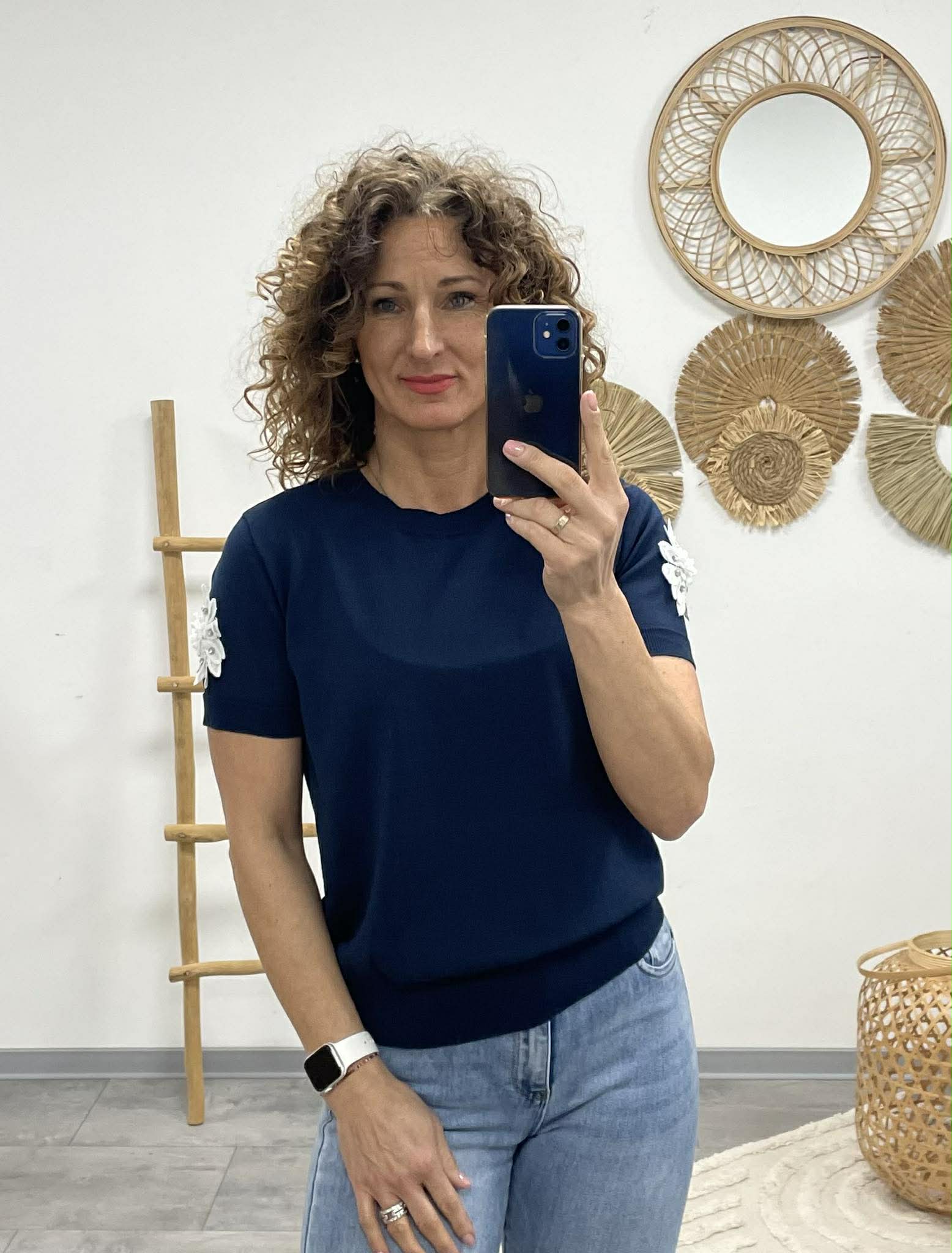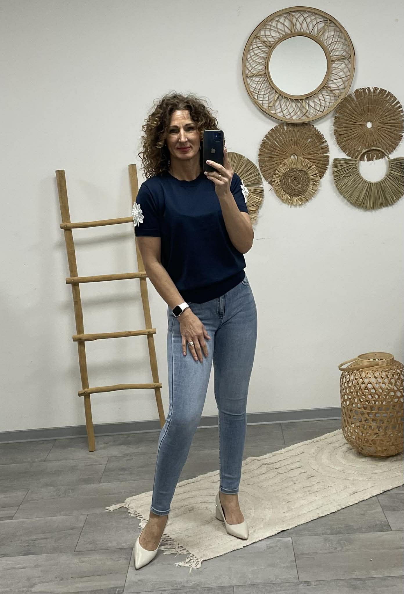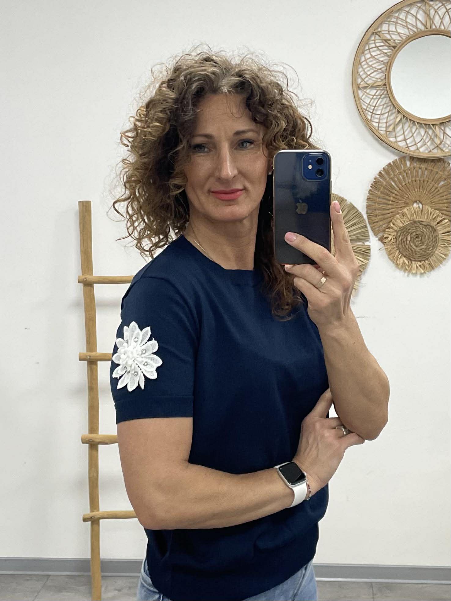 Rövid ujján különleges 3D virágdíszítéssel – apró részlet, nagy hatás. 🌸