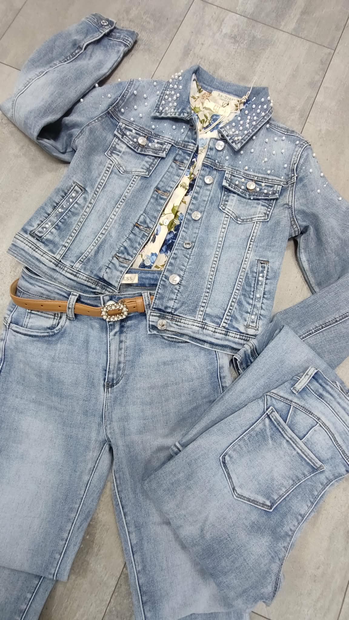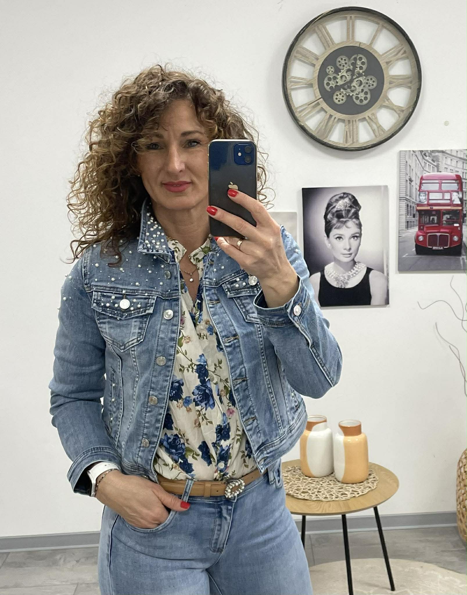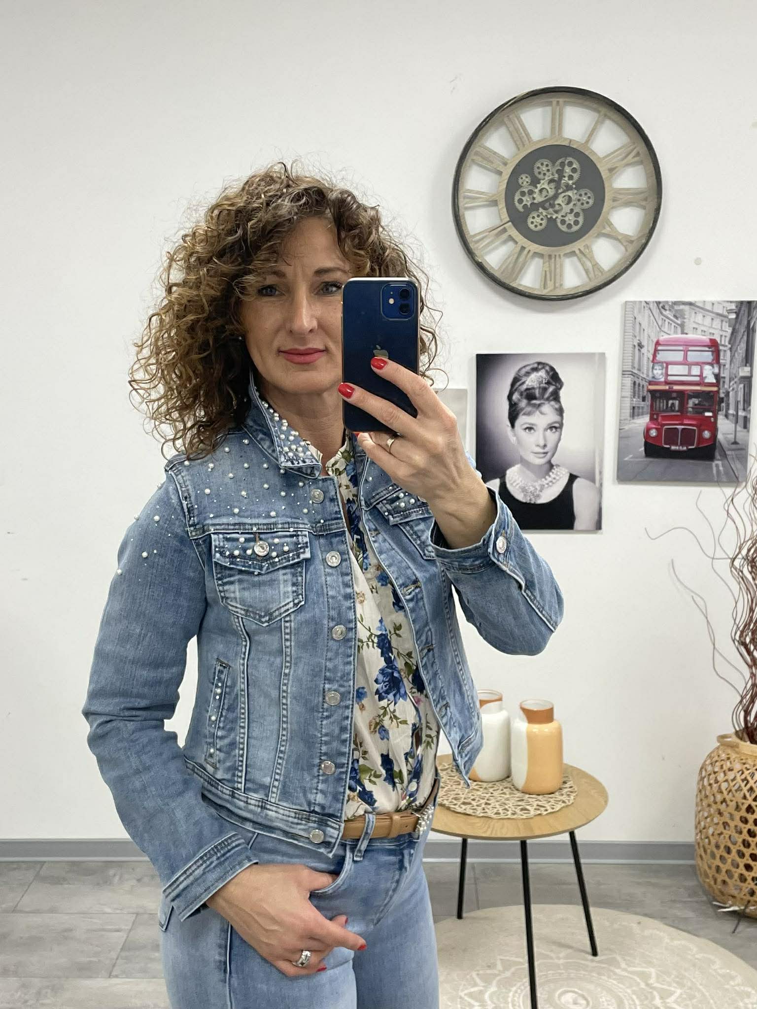 Ez a farmer dzseki igazi alapdarab, mégis különleges: a finom gyöngyös díszítés nőies és trendi megjelenést ad.